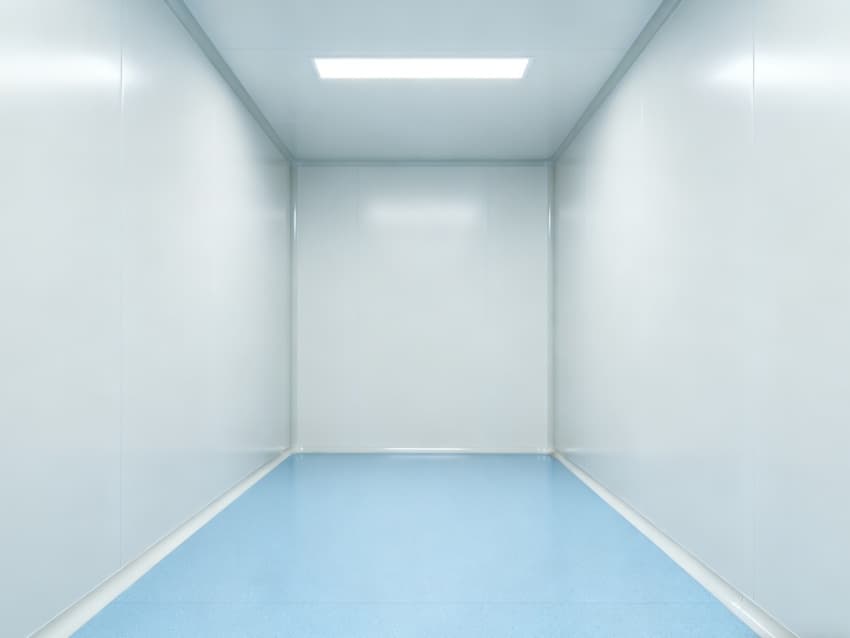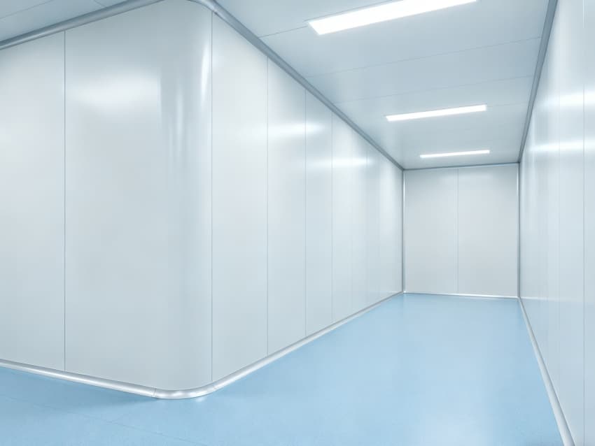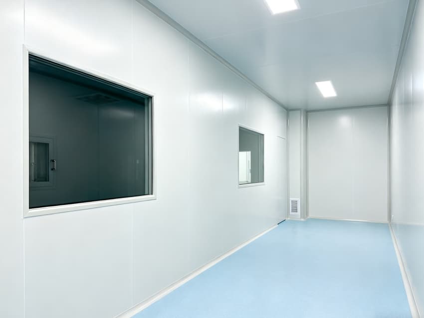 內(nèi)部按功能劃分為六大潔凈區(qū)域:核心潔凈生產(chǎn)區(qū)(淺藍(lán)色防滑防霉地面)預(yù)留開闊空間,滿足發(fā)酵罐、純化設(shè)備等后期安裝;頂部潔凈送風(fēng)區(qū)通過規(guī)整風(fēng)閥系統(tǒng),實(shí)現(xiàn)萬級(jí)潔凈度均勻送風(fēng);墻面過渡區(qū)采用圓弧轉(zhuǎn)角設(shè)計(jì),避免粉塵堆積;密閉觀察區(qū)設(shè)雙層鋼化觀察窗,兼顧生產(chǎn)監(jiān)控與無菌隔離;縱向設(shè)備預(yù)留區(qū)保留8米凈高,適配大型凍干設(shè)備動(dòng)線;輔助緩沖區(qū)銜接車間入口,搭配風(fēng)淋系統(tǒng),實(shí)現(xiàn)人員/物料潔凈過渡。整體空曠布局既保障潔凈操作空間,又滿足皖北生物制藥企業(yè)靈活擴(kuò)產(chǎn)需求,為本地藥企提供合規(guī)、高效的生產(chǎn)載體。