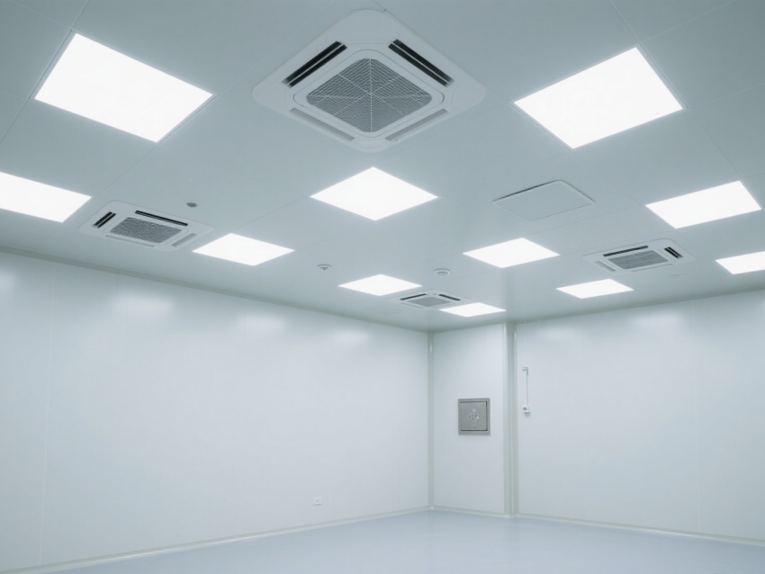 該車間完全符合電子行業十萬級潔凈標準,適用于半導體封裝、電子元器件組裝等場景,無設備的通透空間可靈活適配各類電子生產設備布局,從空間設計層面保障電子產品生產過程的無塵、防靜電需求,降低產品不良率。