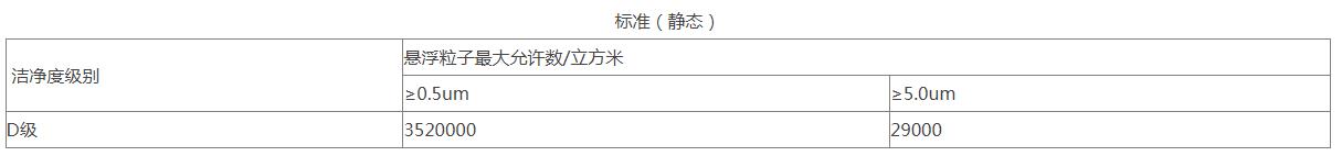 12、潔凈度靜態測試:在生產操作全部結束以后,全部操作人員撤出生產現場,經20分鐘的自凈后,進行空氣懸浮粒子的靜態檢測,并確定警戒限和糾偏限(分別暫定為法定標準的50%及80%)。制劑車間的潔凈級別為D級,在靜態情況下,靜態的標準為: