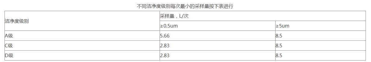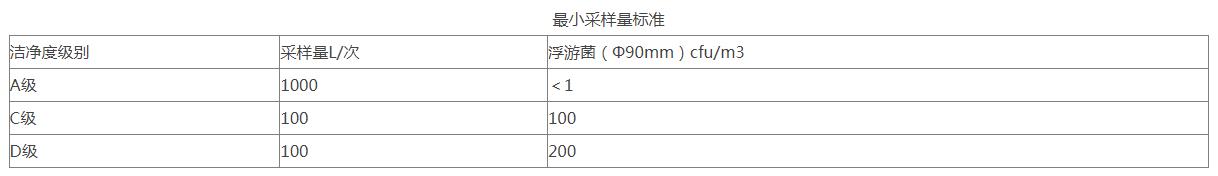 采樣次數的限定對于任何小潔凈室或局部空氣凈化區域,采樣點的數目不得少于2個,總采樣次數不得少于5次。每個采樣點的采樣次數可以多于1次,且不同采樣點的采樣次數可以不同。