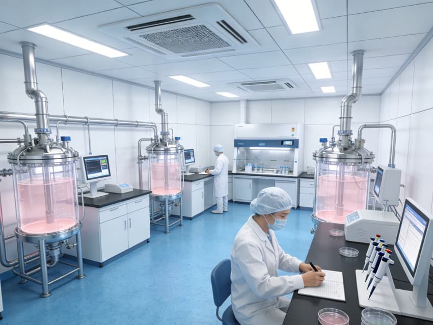 白色墻面采用食品級潔凈抗菌涂層,推行無縫拼接與高精度找直工藝,陰陽角采用R50圓弧倒角設計,徹底消除清潔死角。車間科學劃分細胞培養區、病毒載體構建區、純化區等功能區域,各區域均配備獨立層流凈化系統與負壓防護裝置,細胞培養區預留恒溫恒濕調控接口,純化區預設無菌物料傳遞窗口,全方位保障CGT研發生產的安全性、合規性與穩定性。