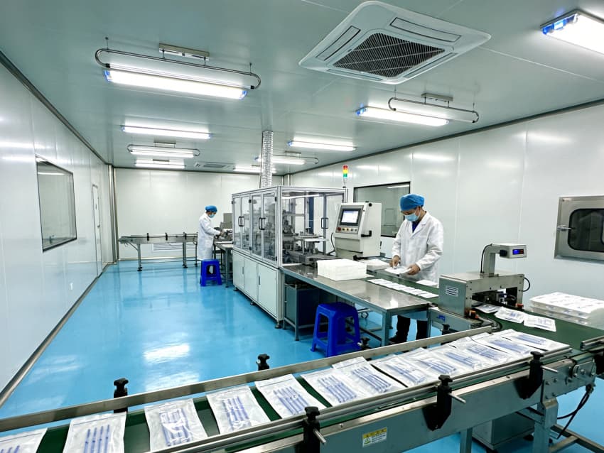 白色墻面采用食品級(jí)潔凈抗菌涂層,推行無縫拼接與高精度找直工藝,陰陽角采用R50圓弧倒角設(shè)計(jì),徹底消除清潔死角,潔凈度穩(wěn)定達(dá)到Class 7級(jí)標(biāo)準(zhǔn)。廠房科學(xué)劃分無菌裝配區(qū)、滅菌區(qū)、檢測區(qū)等核心區(qū)域,各區(qū)域配備獨(dú)立層流凈化與負(fù)壓防護(hù)系統(tǒng),裝配區(qū)預(yù)留恒溫恒濕調(diào)控接口,滅菌區(qū)設(shè)置專用物料傳遞通道,全方位保障生產(chǎn)全流程的無菌性與合規(guī)性,為高品質(zhì)無菌醫(yī)療器械生產(chǎn)筑牢環(huán)境基礎(chǔ)。