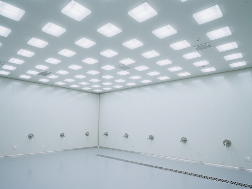 本次呈現的無塵無菌車間效果圖,整體采用極簡工業風設計,墻面、地面、頂面均選用一體化抑菌潔凈板材,色調以醫用級純白為主,搭配淺灰金屬收邊,視覺上凸顯整潔通透感。?