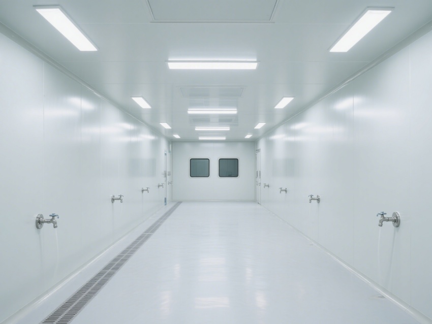 效果圖從不同視角展現空間優勢:正面視角呈現開闊的通透格局,無設備干擾更顯規整;角落特寫聚焦圓弧墻角與無縫拼接工藝,規避積塵死角;側視角度凸顯層流送風系統與高效過濾裝置,直觀傳遞潔凈技術核心;局部細節圖則清晰展示地面防滑紋理、墻面抗污涂層等實用設計。?