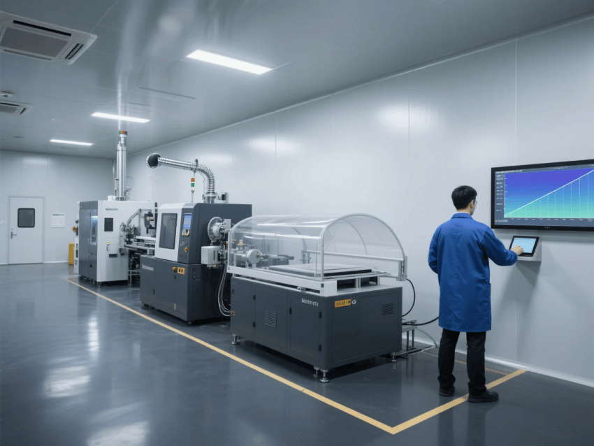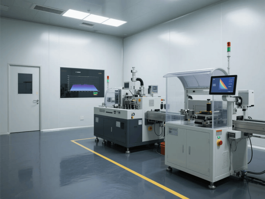 空氣凈化系統(tǒng)采用FFU+ULPA超高效過濾組合,換氣次數(shù)≥40次/h,核心鍍膜區(qū)設置Class100潔凈工作臺;