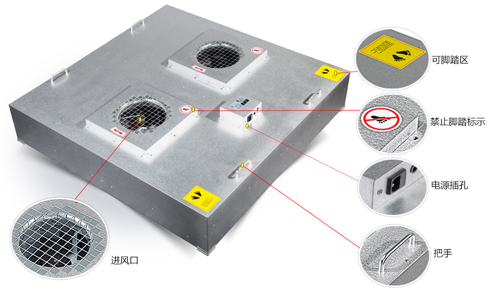目前,各種FFU最多由以下幾部分組成(按從上到下、從內(nèi)到外的順序),視不同廠家組成部分可能有所減少。