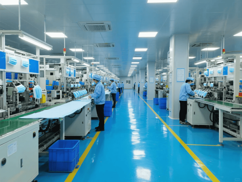 本方案采用"醫療工業極簡風",符合YY/T0969-2013口罩行業標準。車間按功能分區: